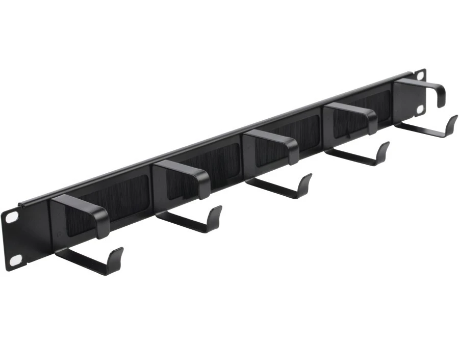 6. Organizator kabli RACK 19 cali 1U metalowy z uchwytami i przepustami szczotkowymi czarny NEKU 36.72