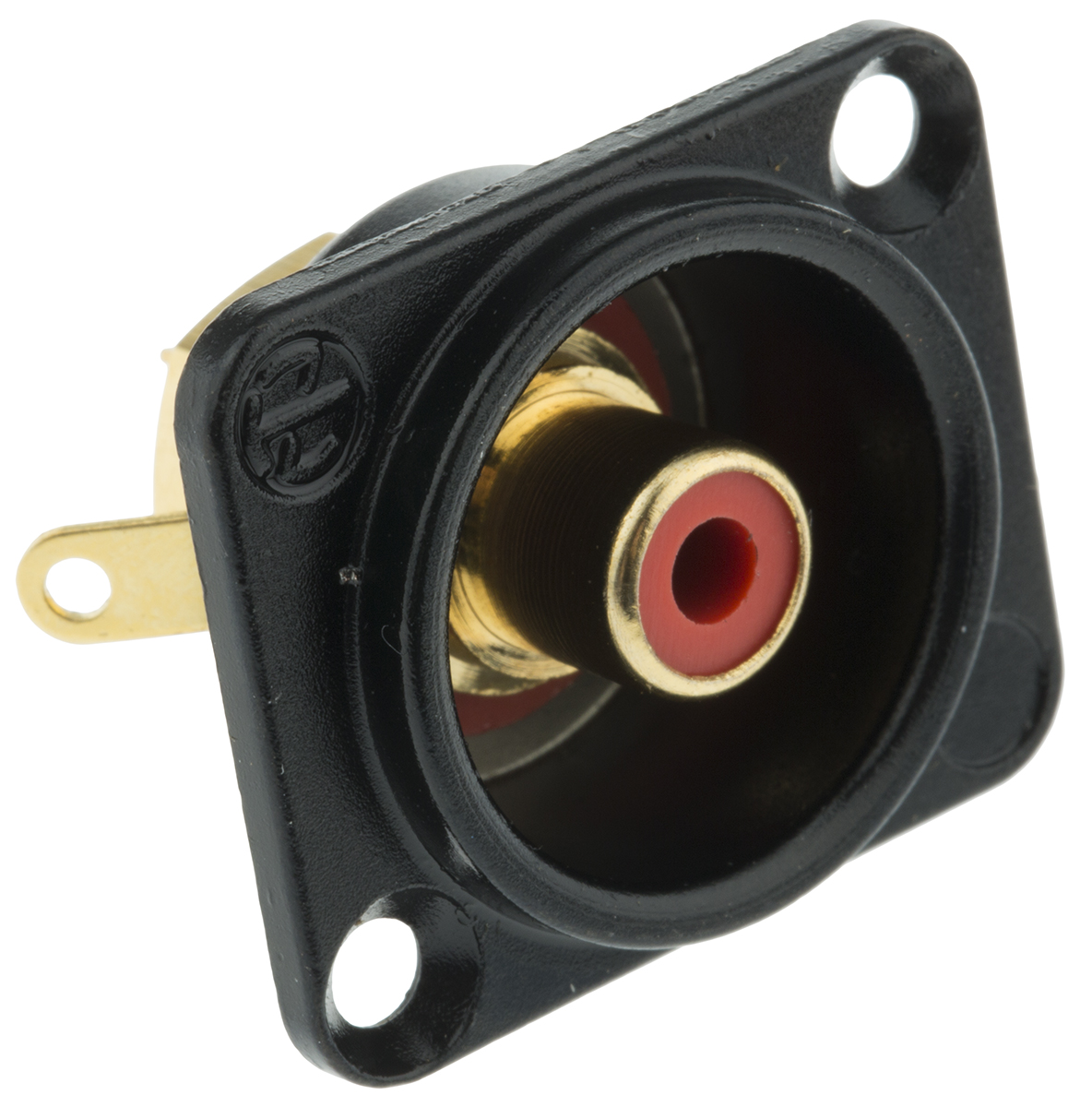 8. Gniazdo RCA Montaż na panelu Żeński Lutowane, styki pozłacane 16A Neutrik 42.57
