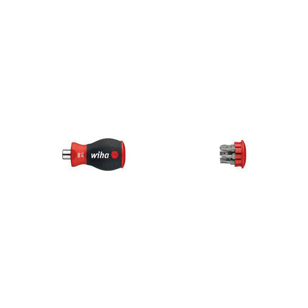 Wiha Magnetyczny wkrętak z magazynkiem bitów Pozidriv, Phillips z 6 bitami, Stubby 1/4” w opakowaniu blistrowym SB380102 33741