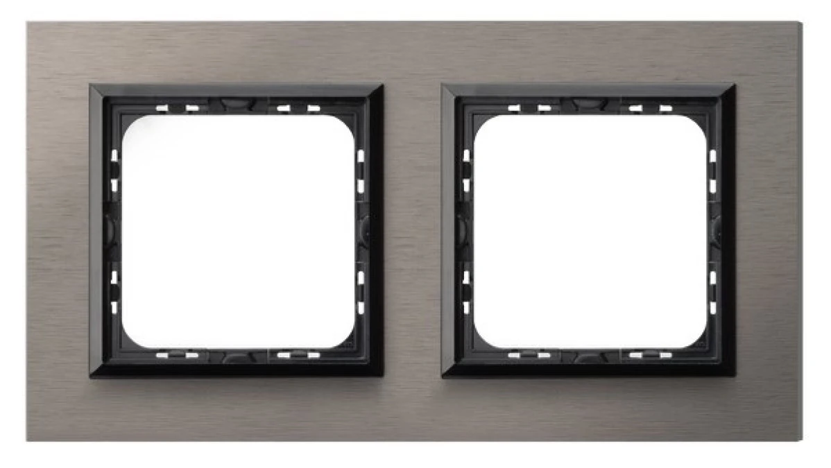 IMPRESJA PRESTIGE Ramka 2 podwójna aluminiowa 4 mm szczotkowana satyna + ramka czarna R-2YAC/63/25 OSPEL