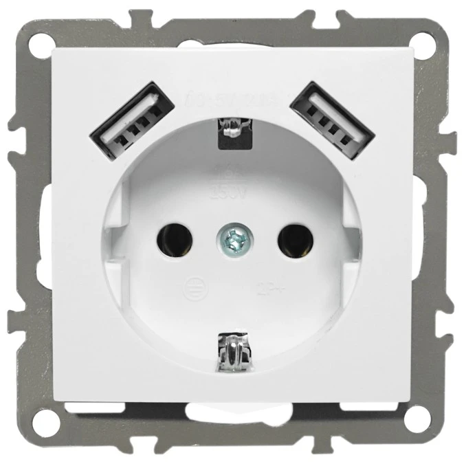 QUADRA Gniazdo SCHUKO +2x USB białe