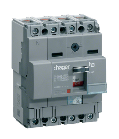 15. Wyłącznik kompaktowy MCCB, 4-biegunowy, 40A, 220/415V, Montaż na szynie DIN, Hager, HHA 3335.91