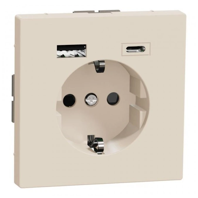 4. USB charger + socket-outlet, Merten System Design, 2P + E, 16A screwless terminals, glossy, sahara MTN2367-6033 942.43