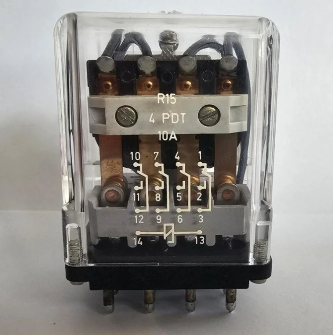 13. Przekaźnik przemysłowy 4P 10A 24V AC AgCdO R15-1014-23-3024 611279 91.33