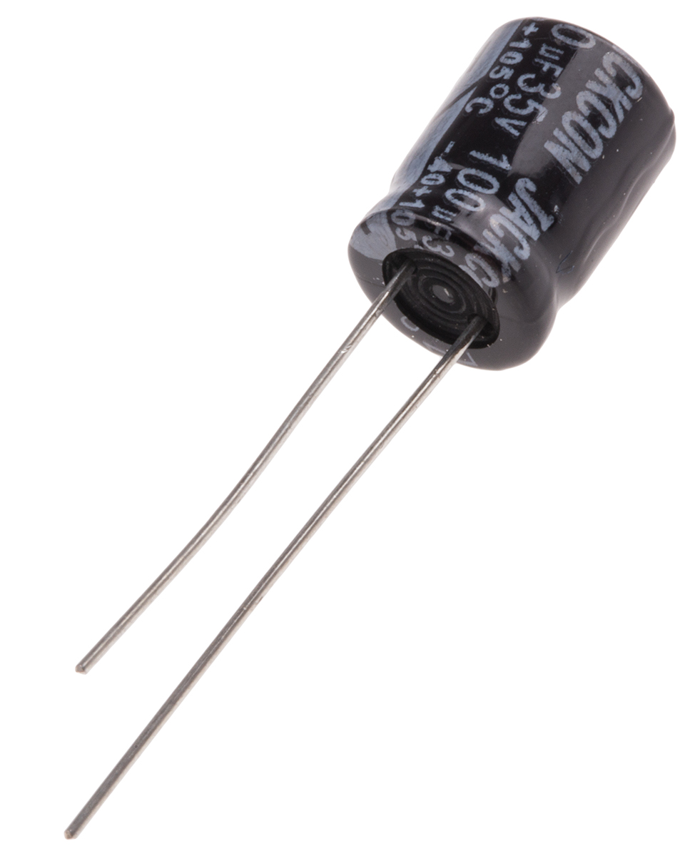 5. Kondensator 100μF 35V dc Radialny, Otwór przelotowy Rubycon roztaw: 2.5mm 6.3 (Dia.) x 11mm 0.47 x2000