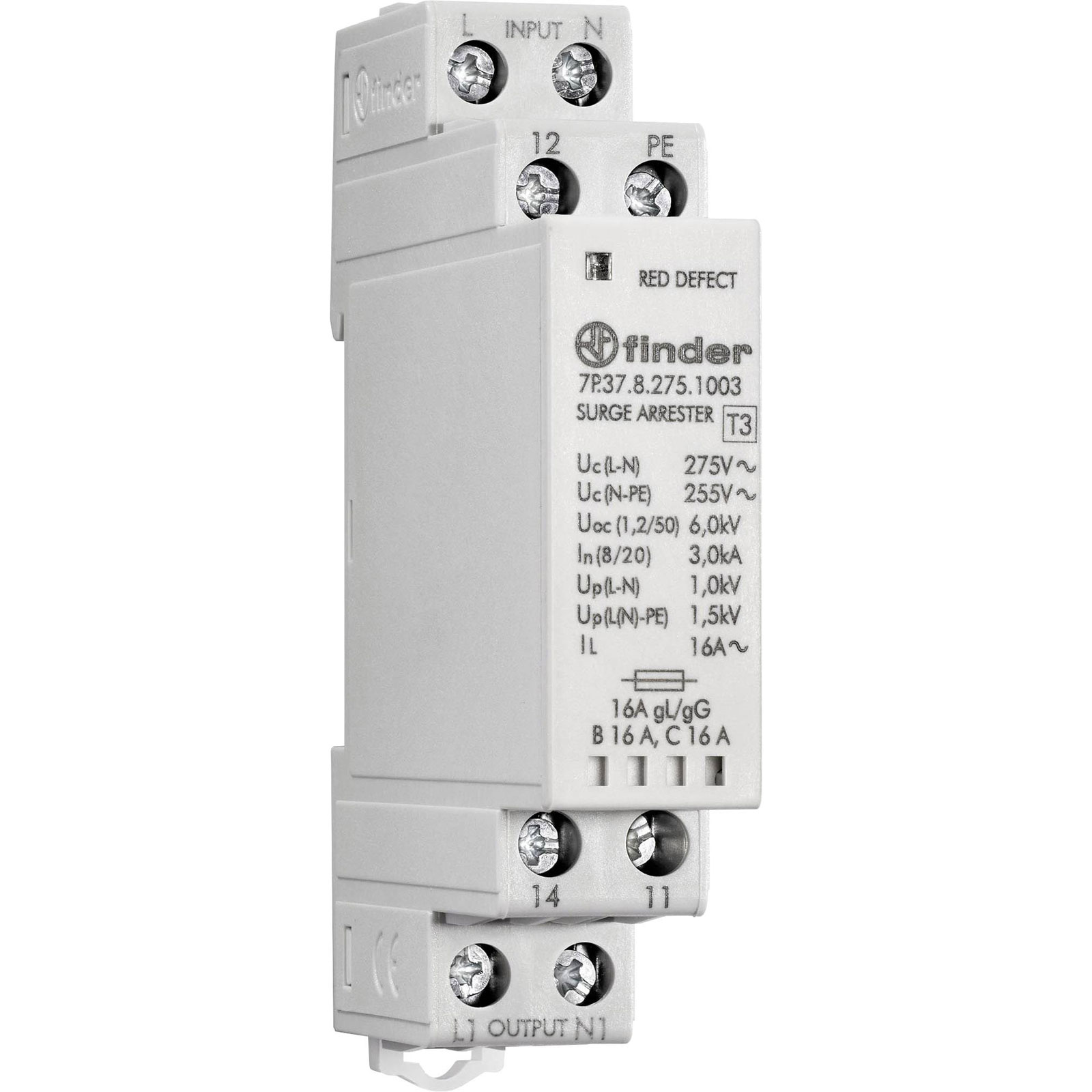 Finder 7P.37.8.275.1003 Surge arrester 230V 1-ph. 3kA LED Rail mount
