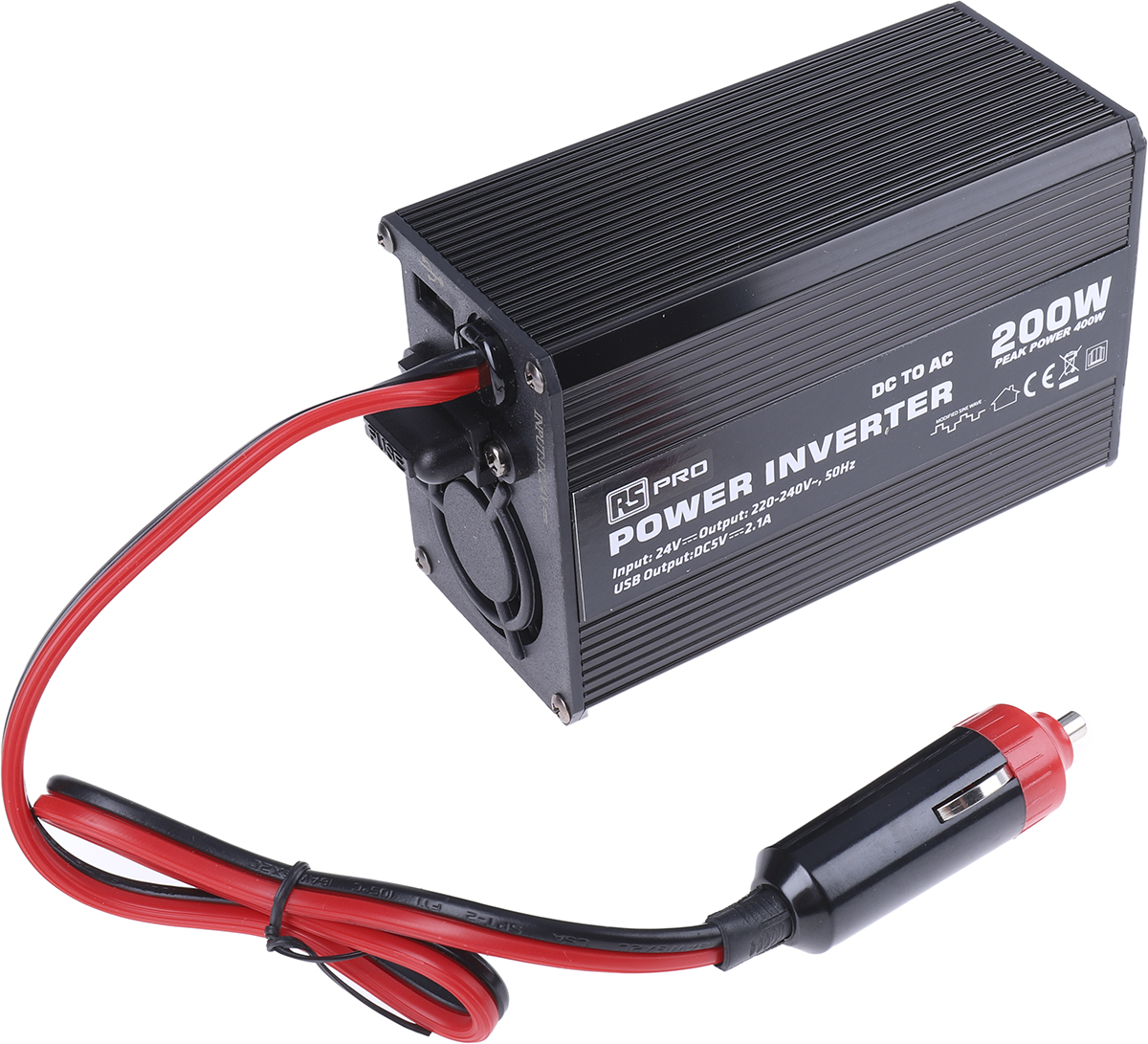 1. Przetwornica napięcia 12V dc / 230V ac moc wyjściowa 200W RS PRO 281.07