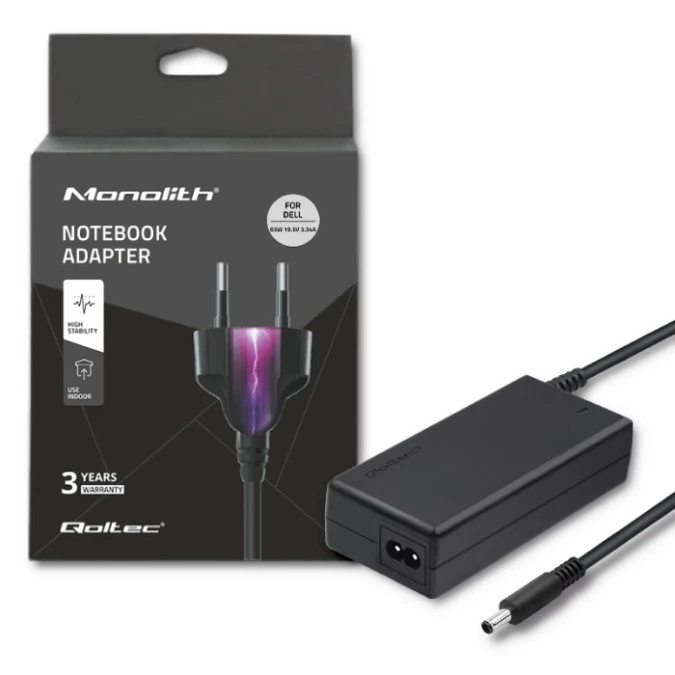 Qoltec Zasilacz do laptopa Dell 65W 19.5V 3.34A 4.5*3.0+pin +kabel zasilający