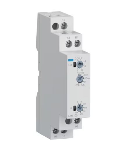 1. Timer Relay Szyna DIN 12 → 240V ac/dc SPDT 1-stykowy Hager 1 → 360000s EZM100 Wielofunkcyjne funkcyjny 1781.93