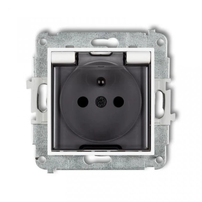 8. KARO Gniazdo pojedyncze z uziemieniem schuko z przesłonami IP44 zaciski gwintowe biały klapka dymna GPH-1SSP/m/00/d OSPEL 24.97