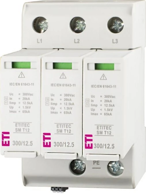 Ogranicznik przepięć typ T1+T2 (B+C) ETITEC SM T12 300/12,5 3+0 RC kombinowany (warystor+iskiernik) TN-C 002440545