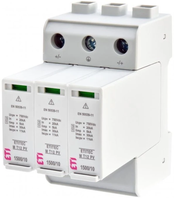 Ogranicznik przepięć PV DC Typ 1+2 (B+C) 1500V 3P 12,5kA 4,5kV ETITEC M T12 PV 1500/10 Y 002440513 ETI