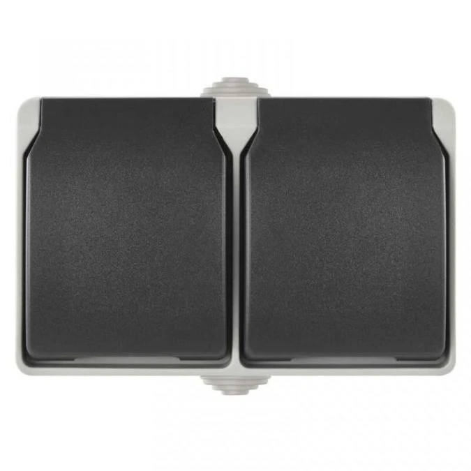 Gniazdo podwójne IP44 szaro-czarne EMOS A1397.1
