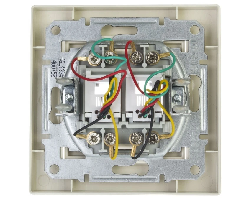 7. Gniazdo komputerowe Asfora podwójne 2xRJ45 kat.5e kremowe z ramką EPH4400123 78.19