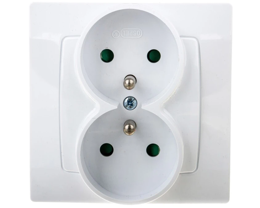 12. KARO Gniazdo podwójne z uziemieniem do ramki IP-20 zaciski gwintowe srebrny perłowy GP-2SRZ/m/43 OSPEL 22.21