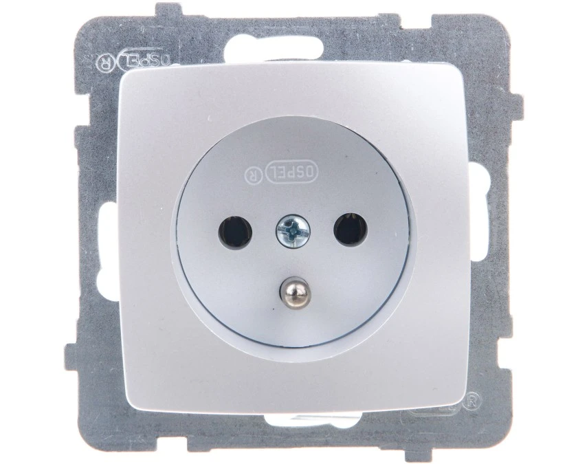 1. KARO Gniazdo pojedyncze z uziemieniem IP-20 zaciski gwintowe srebrny perłowy GP-1SZ/m/43 OSPEL 21.44