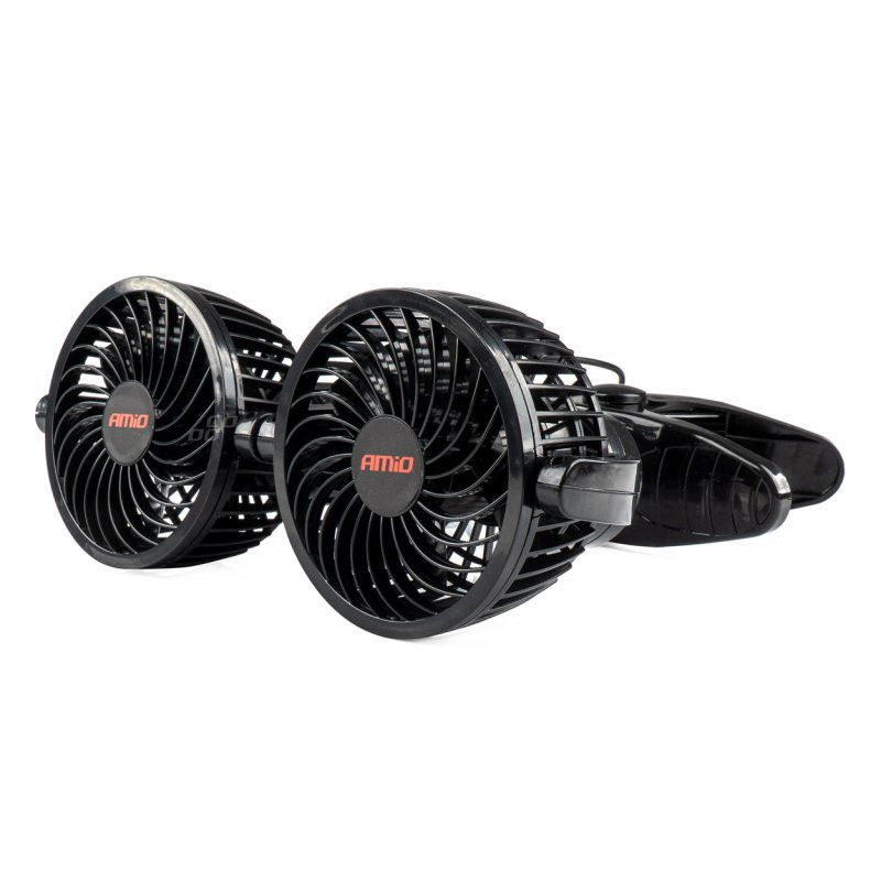 Wentylator samochodowy AmiO 2x4" Podwójny wiatrak 12V z klipsem