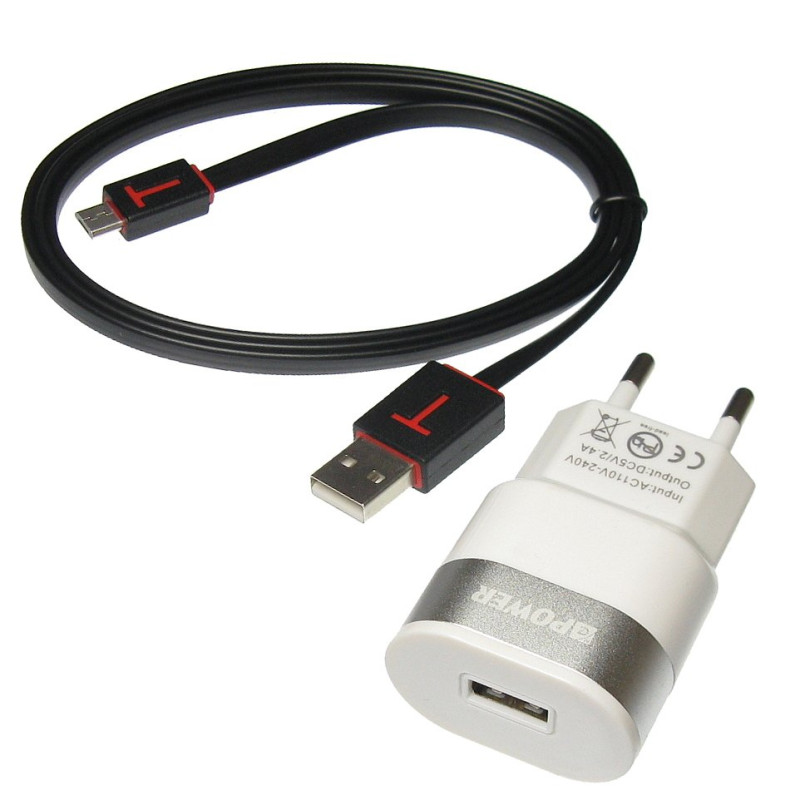 Ładowarka USB 2.4A Slim Zestaw z kablem mikro USB NEPOWER Zasilacz 230V