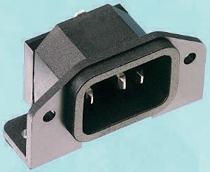 4. Złącze IEC IEC C14 Montaż panelowy, montaż na płytce drukowanej Męski 10A Kąt Proste liczba bezp None Lutowane Bulgin 24.64