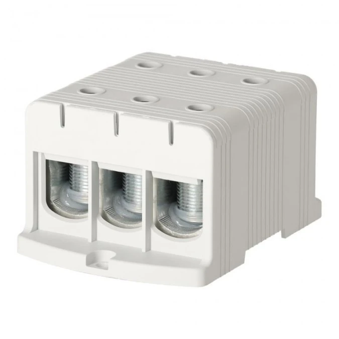 1. Blok rozdzielczy odgałęźny 3-polowy Al/Cu 35-240mm2 (max. 240mm2) na szynę TH35 szary FJ-E240/3 HEDO 117.74