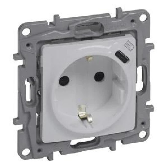Niloe Selection Gniazdo 2p+z płaskie 16A 250V + USB typ c w plakietce (z przesłoną, zaciski automatyczne) perła 762496