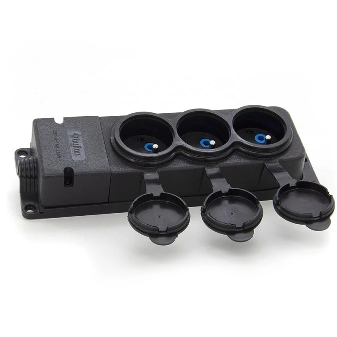 Listwa, gniazdo gumowe (TPE) potrójne IP44 3x16A 2P+Z, kolor czarny, TRG-3