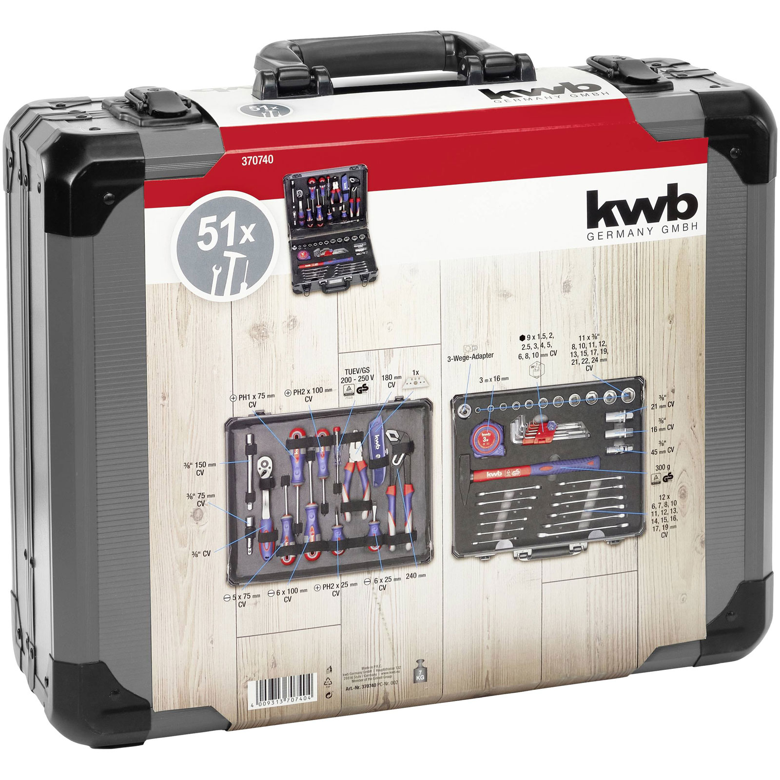 10. kwb 370740 Toolbox 51-piece set sturdy aluminium case for portability 520.10