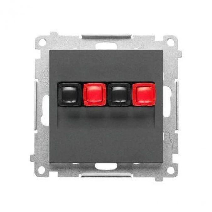 Simon 55 Gniazdo głośnikowe 2-krotne (moduł). Przekrój przewodów dla wejścia i wyjścia 2,5 mm2 Grafitowy mat TGL2.01/116