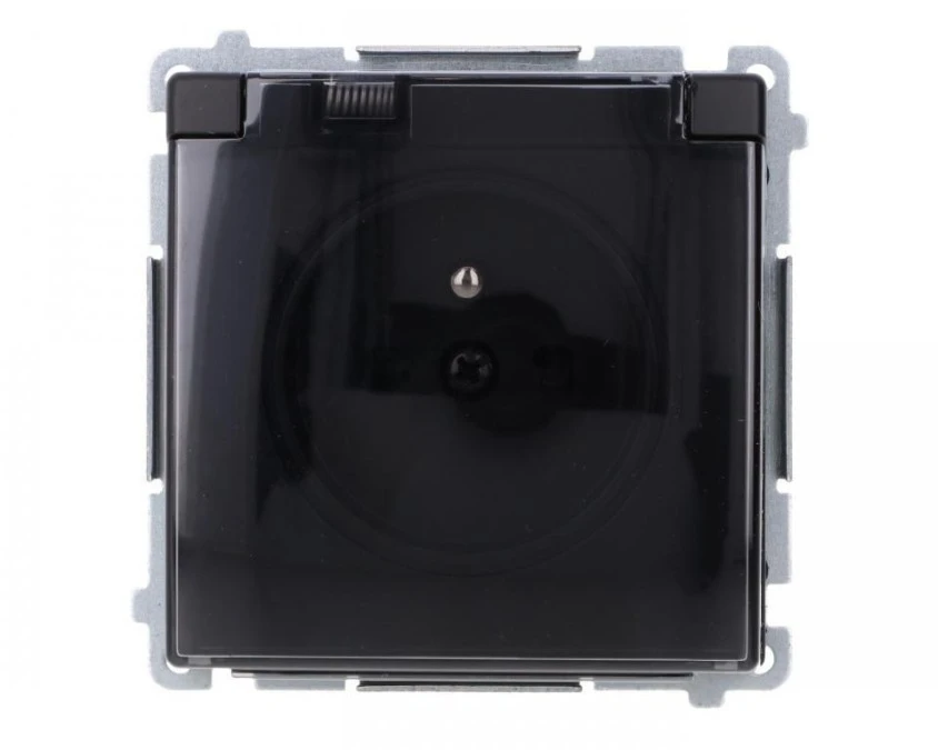 Simon Basic Gniazdo wtyczkowe z uziem., z przesł. torów prąd, IP44 (moduł) zaciski śrubowe klapka transp. czarny BMGZ1BZ.01/49A