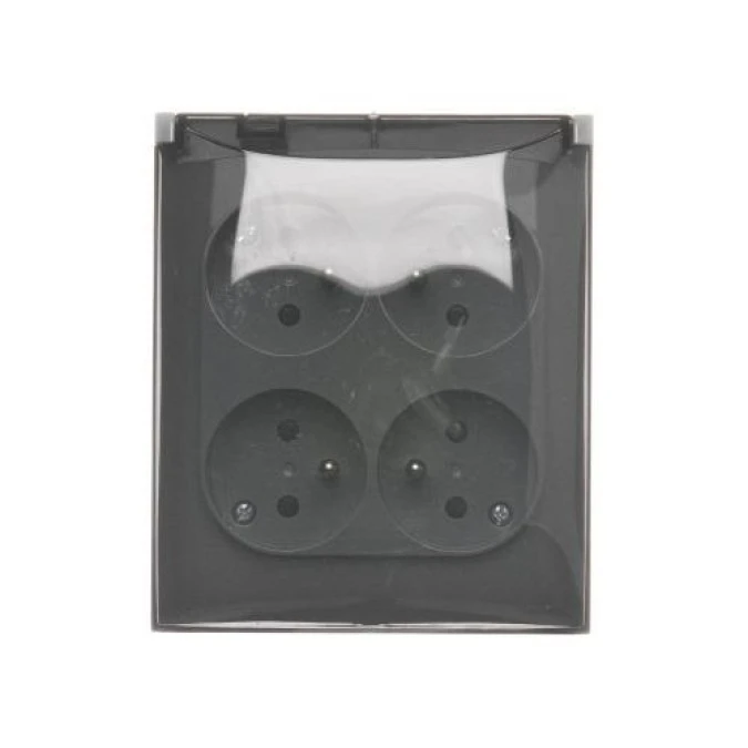 16. Simon Aquaclick Gniazdo natynkowe, 4-krotne z uziemieniem, klapka transp. z przesłonami, IP44, zaciski ciemnoszary ACGZ4Z/18A 55.53