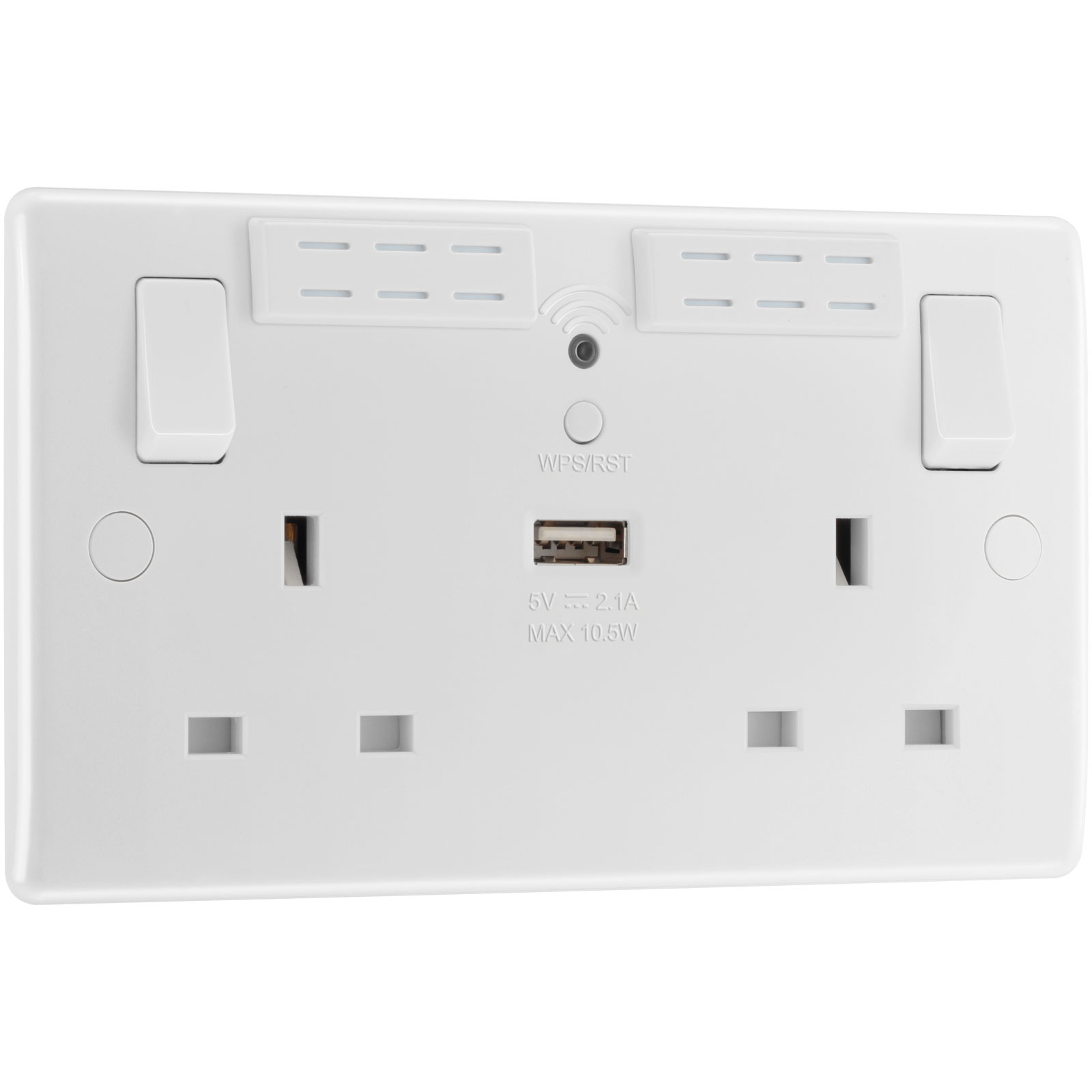 BG 822UWR White Nexus Double Switched 13A Power Socket - Wifi Extender + USB