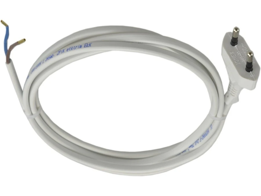 Kabel zasilający 2m z wtykiem płaskim 230V 2.5A, przekrój 2x0.75mm2, biały