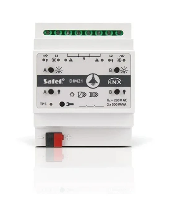 Aktor ściemniający KNX-DIM21 dla systemów automatyki KNX, 2 kanały po 300 W, Satel