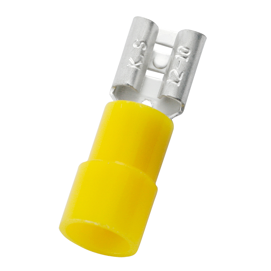 Konektor płaski Żeński 6.35 x 0.8mm 4 → 6 mm², 12 → 10 AWG długość 23.5mm Izolacja: Izolowane Cyna