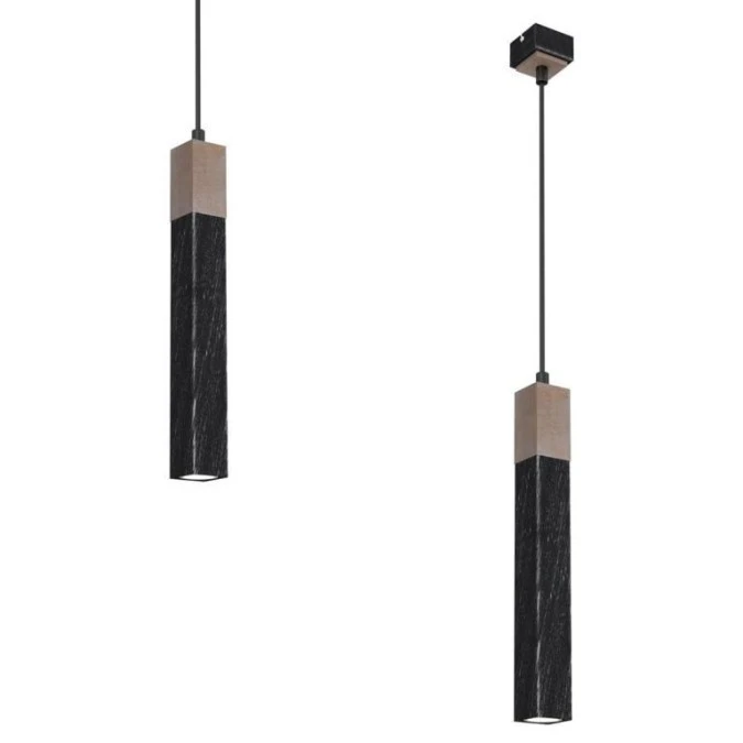 Lampa wisząca SOLO SAWN BLACK / PATINATED WOOD 1x mini GU10 MLP7469 Milagro