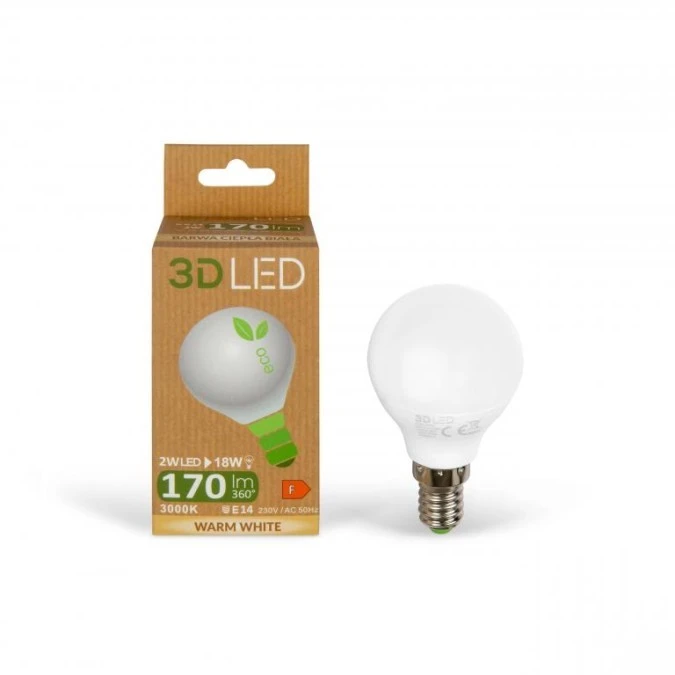 1. Żarówka LED 2W E14 Kulka 170lm Ciepła 3000K / GP012C02 3.05
