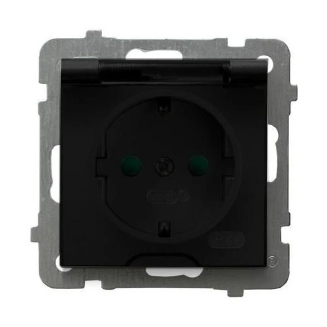 9. AS Gniazdo bryzgoszczelne z uziemieniem schuko IP-44 z przesłonami torów prądowych wieczko przezroczyste czarny metalik GPH-1GSP 30.53