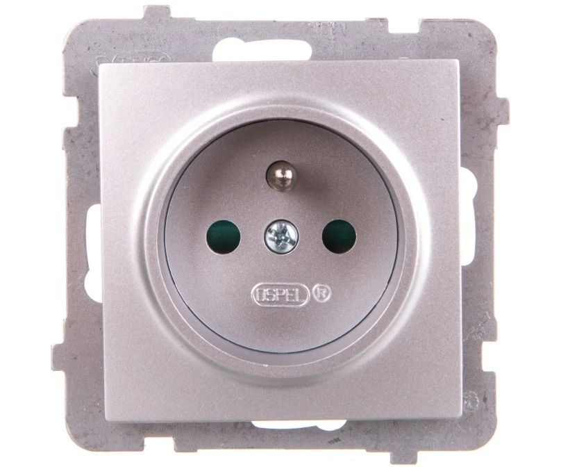 6. AS Gniazdo pojedyncze z uziemieniem z przesłonami torów prądowych satyna light GP-1GZP/m/45 OSPEL 24.19