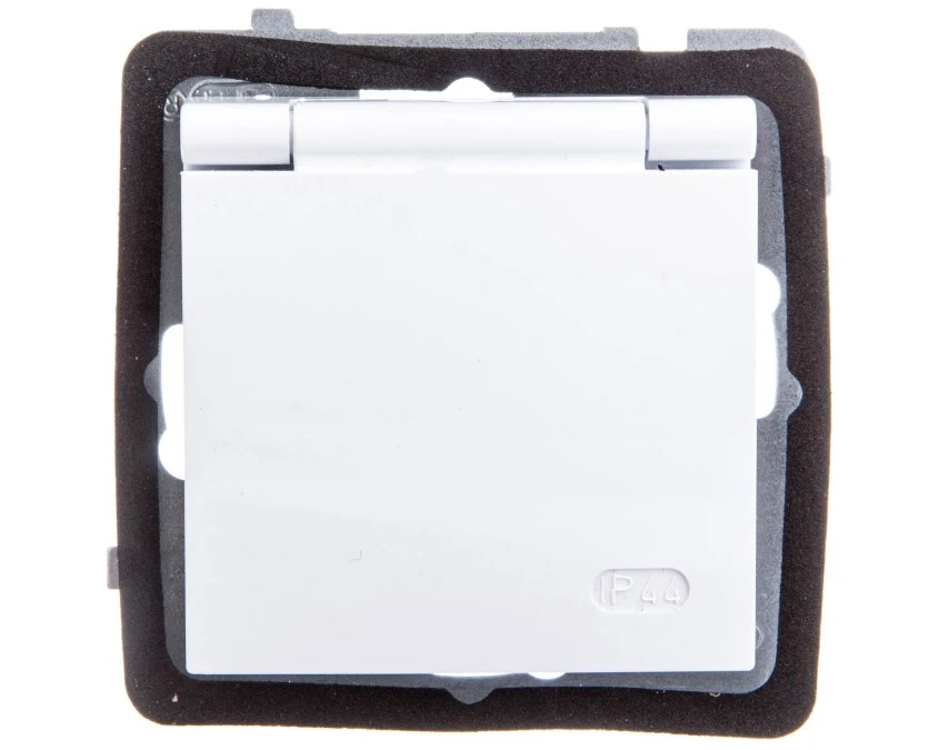 AS Gniazdo bryzgoszczelne z/u IP44 z przesłonami klapka biała GPH-1GZP/m/00/w