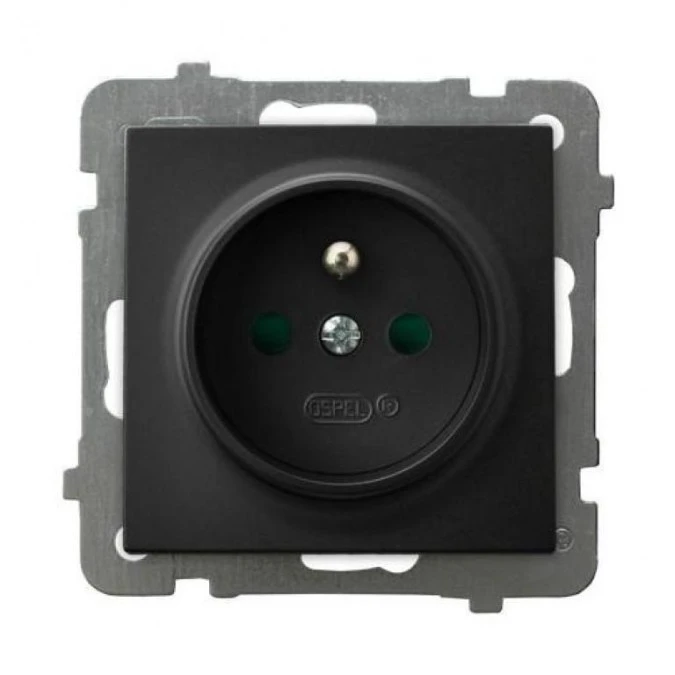AS Gniazdo pojedyncze z uziemieniem z przesłonami srebrne GP-1GZP/m/18 OSPEL