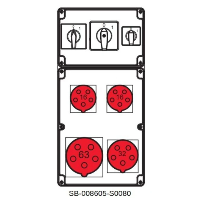 Rozdzielnica 0-1(63A) 0-1(32A) 0-1(16A) 1x5x63A 2x5x32A 4x3x16 SB-008605-S0300-54