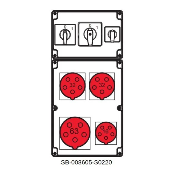Rozdzielnica 0-1(63A) 0-1(32A) 0-1(16A) 1x5x63A 2x5x32A 1x5x16 SB-008605-S0220-54
