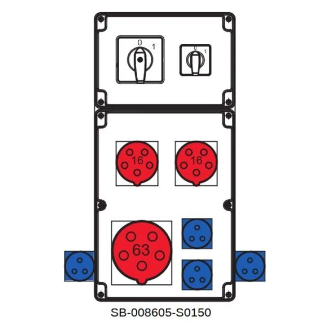 Rozdzielnica 0-1(63A) 0-1(16A) 1x5x63A 2x5x16A 4x3x16A INA=63A SB-008605-S0150-54