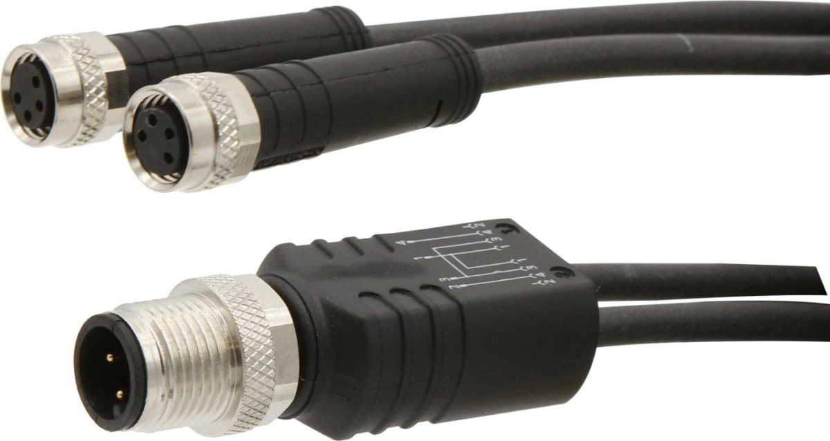 Vk000055, Rozdzielacz, 60V, 2X M8 4Pin, M12 4Pin, 4A 2Xm8-Dose4p,1Xm12-Stecker4p