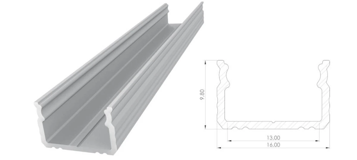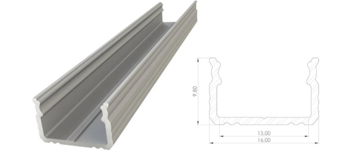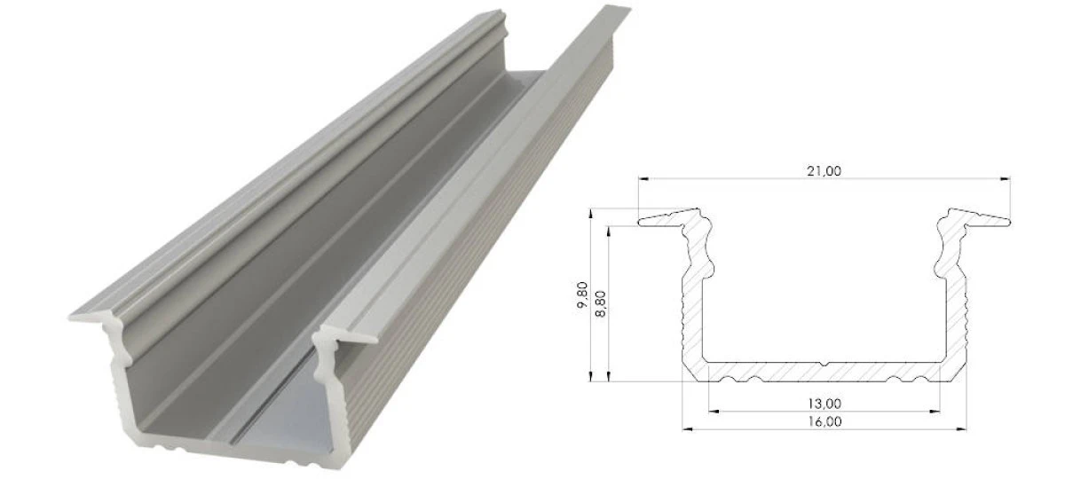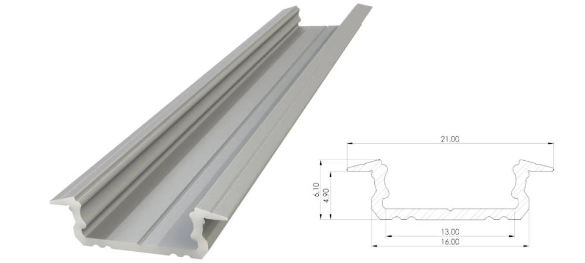2. profil ALU wpuszczany 6,1mm, surowe aluminium, dł 2020mm, max szer taśmy 12mm 13.59