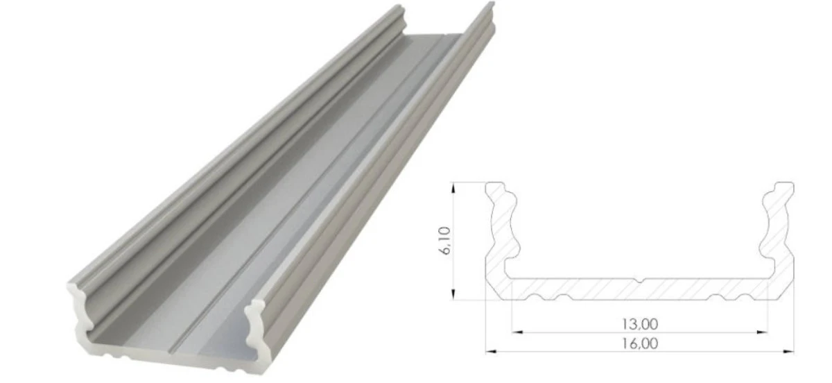 3. Profil Alu Wpuszczany 6,1Mm, Surowe Aluminium, Dł 2020Mm, Max Szer Taśmy 12Mm 13.85