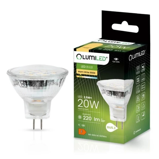 Żarówka LED MR11 2,5W = 20W 220lm 3000K Ciepła 120 LUMILED