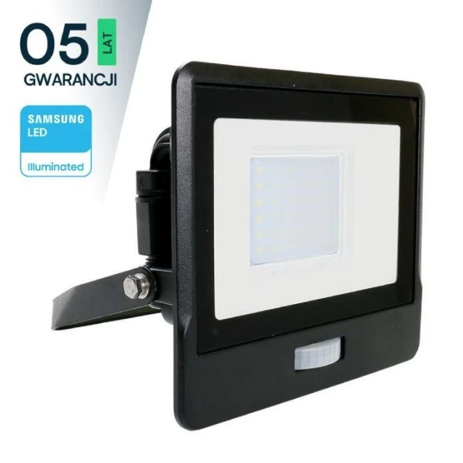 Projektor LED z czujnikiem ruchu 30W 2340lm 6500K Dioda SAMSUNG IP65 Czarny 5 Lat Gwarancji 20264