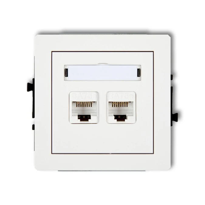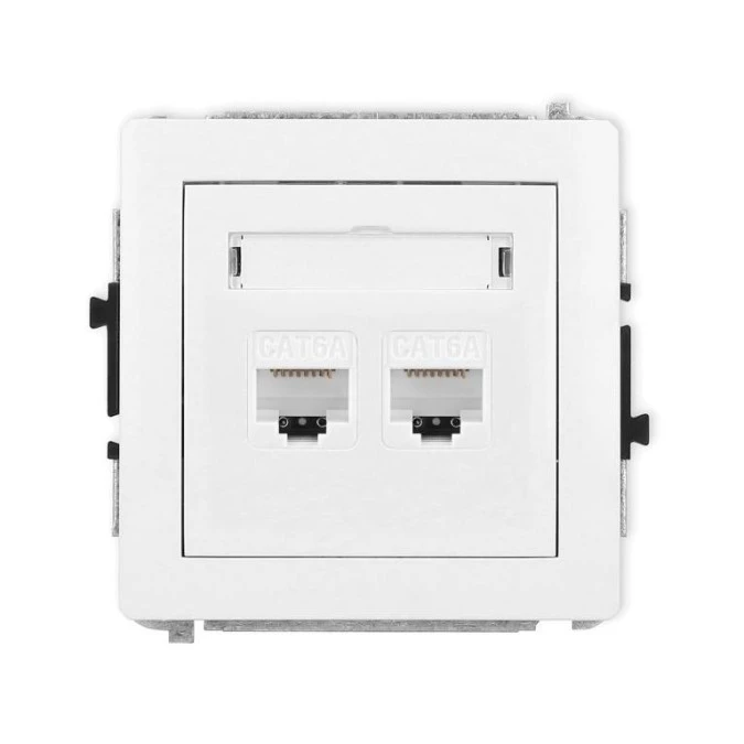 1. DECO Mechanizm gniazda komputerowego podwójnego 2xRJ45, kat. 6A, 8-stykowy biały mat 25DGK-8 KARLIK 114.32
