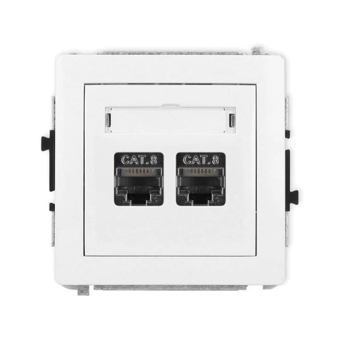 DECO Mechanizm gniazda komputerowego podwójnego 2xRJ45, kat. 8, ekranowane, 8-stykowy biały mat 25DGK-12 KARLIK